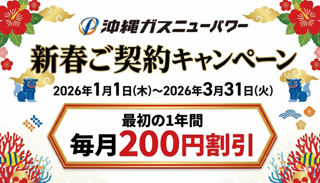 株式会社沖縄ガスニューパワー(以下「当社」)は、2026年1月1日(木)より、電気の新規お申込みを対象とした「新春ご契約キャンペーン」(以下「本キャンペーン」)を実施いたします。