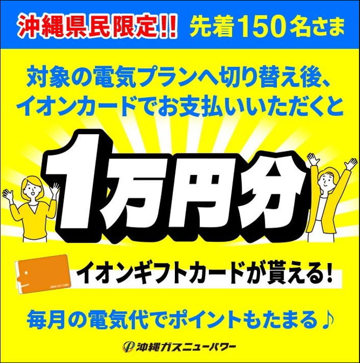 • 名称:「イオンカード×沖縄ガスニューパワーコラボ企画!でんきのお切替キャンペーン!」